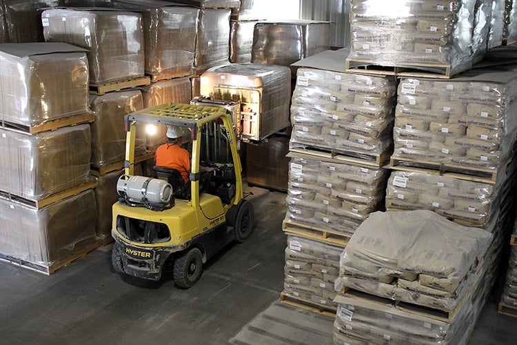 Loading Hess Standard Pozz in pneumatic rail cars.